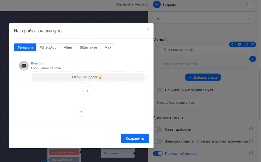 Перед тем как разбирать сложный функционал, давайте быстро освежим базовые навыки работы с конструктором Watbot.ru.
