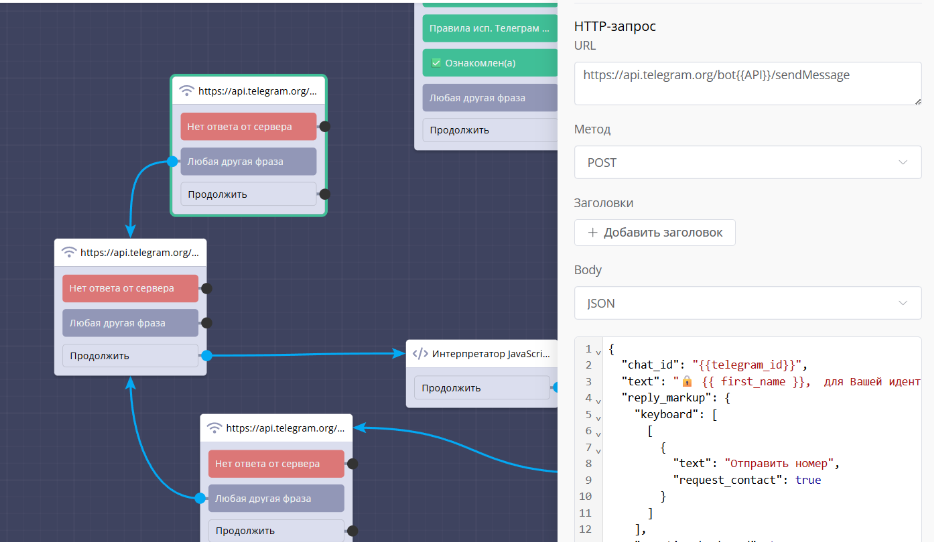 После подтверждения ознакомления запускается цепочка из нескольких HTTP-блоков.