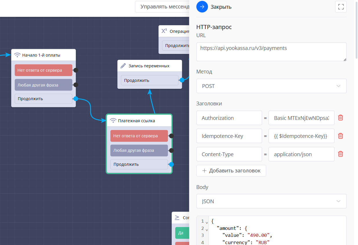 Четвертый блок — еще один HTTP-запрос с методом POST, который генерирует платежную ссылку для пользователя.