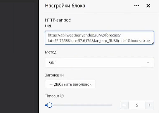 Шаг 3. Настройте HTTP-запрос к Яндекс.Погоде