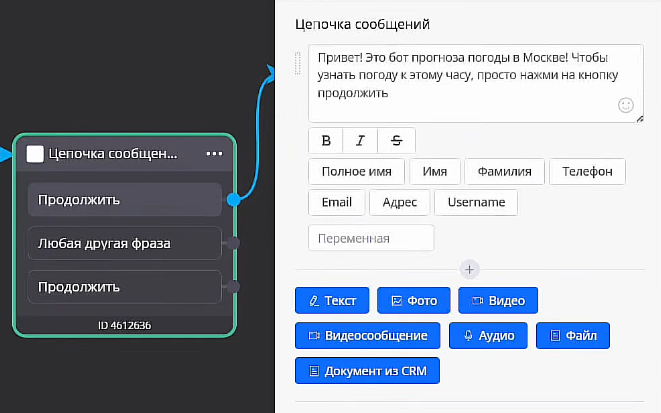 Вернитесь в конструктор Watbot. Текущий HTTP-запрос (из Части 1) больше не нужен — создайте новую ветку сценария.