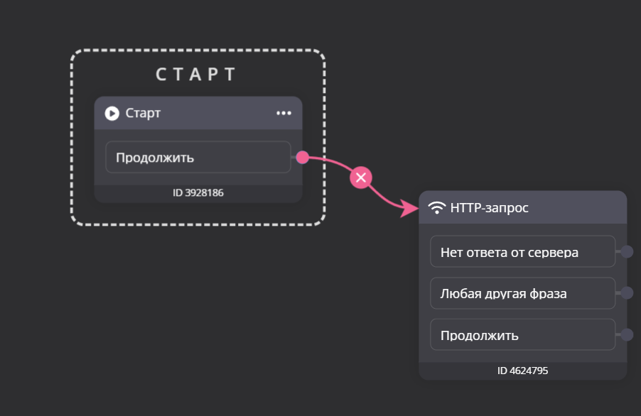 Проведите связь от кнопки «Продолжить» к новому блоку HTTP-запрос.