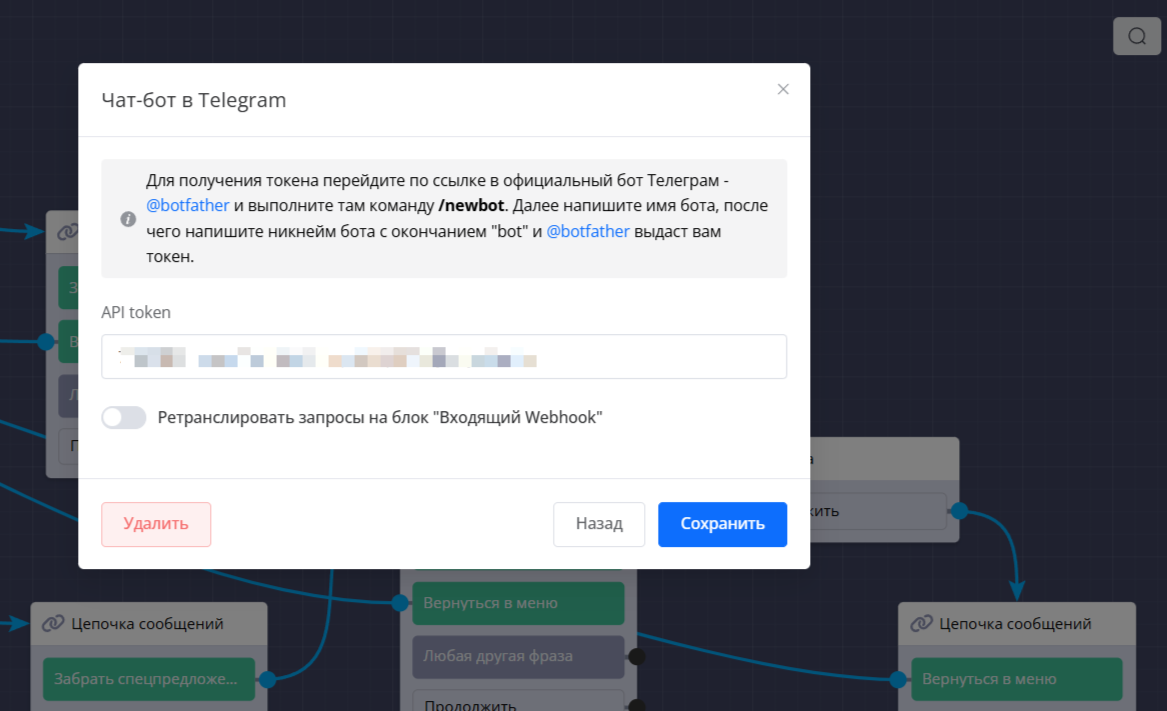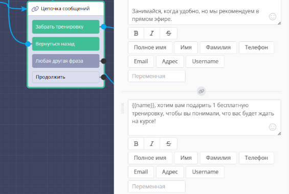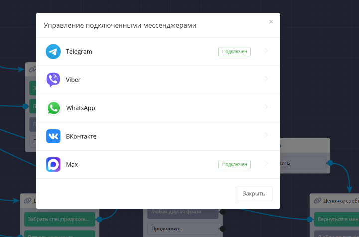 Важно: Пока не подключайте мессенджер — сначала соберём сценарий, потом подключим.